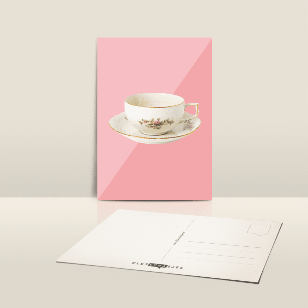 Postkaart met afbeelding van een porseleinen theekopje.