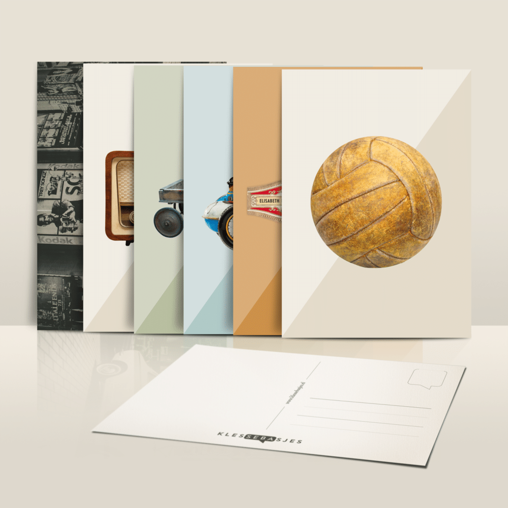 Zestal postkaarten met stoere afbeeldingen die zorgen voor een feest van herkenning.