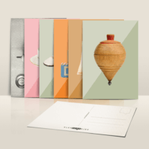 Zestal postkaarten met speelse afbeeldingen die zorgen voor een feest van herkenning.